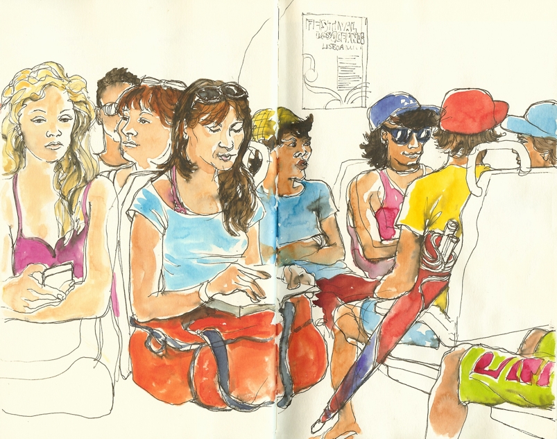 Cathy, thank you for taking us on this voyage of Lisbon. The people fit so naturally into their surroundings here in you sketches! And when you spoke about facing the throngs on the beach, I thought: yes throngs and thongs! All in all a very enjoyable post. Will you tell us about the formal parts of the symposium too?
